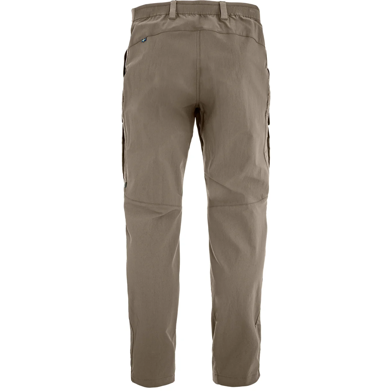 Create an accountVersatile trekking trousers in true Fjällräven style. Abisko Hybrid Trail Trousers for men have G-1000 Lite Stretch on the front and full stretch recycled polyamide/elastane fabric on the back. The front can be waxed for enhanced weather resistance while the back is highly ventilating and gives excellent freedom of movement. The elasticated waist further enhances comfort and fit. Zippered ventilation openings at side, open hand pockets and buttoned leg pockets, one with a zipper.