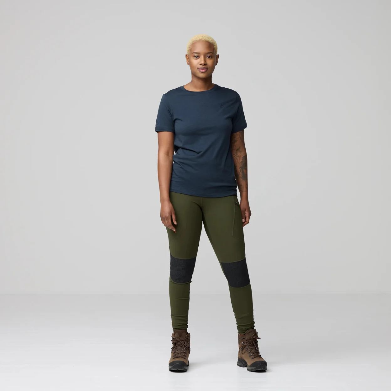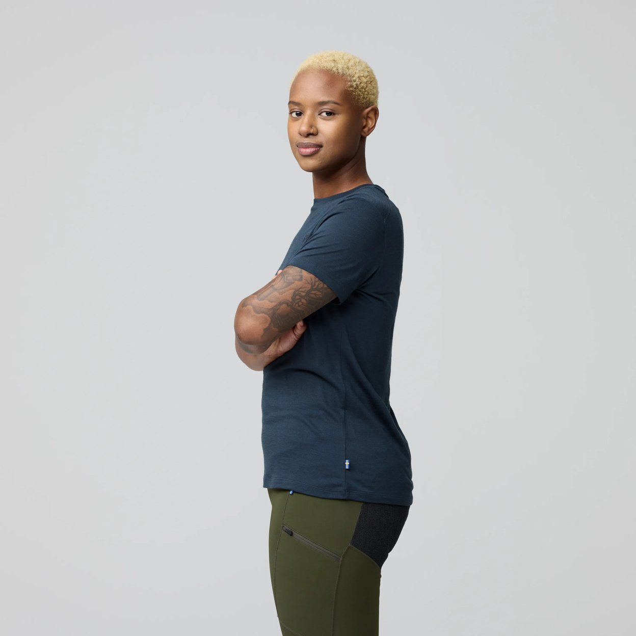 Create an accountLightweight short-sleeved t-shirt in a soft jersey knit made from merino wool and recycled polyester. Combines the temperature-regulating properties of wool fibres with the durability and moisture-wicking properties of synthetic ones. A perfect first layer in both warm and cold climates, and extra useful on multiday trips as wool naturally resists bad odours.