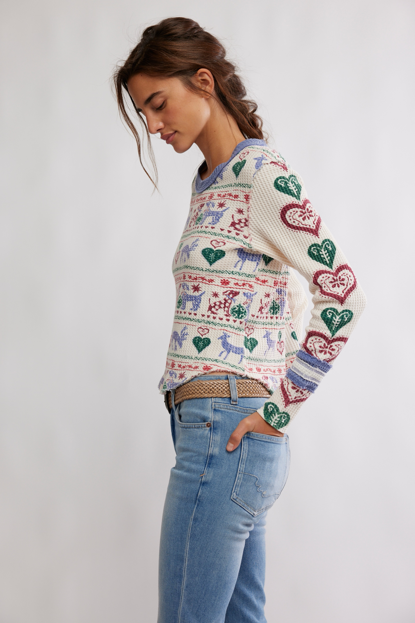 Create an accountPerfect in print from the We The Free collection, this long-sleeve features a waffle-knit fabrication and relaxed fit with a scoop-neckline and contrast trim.