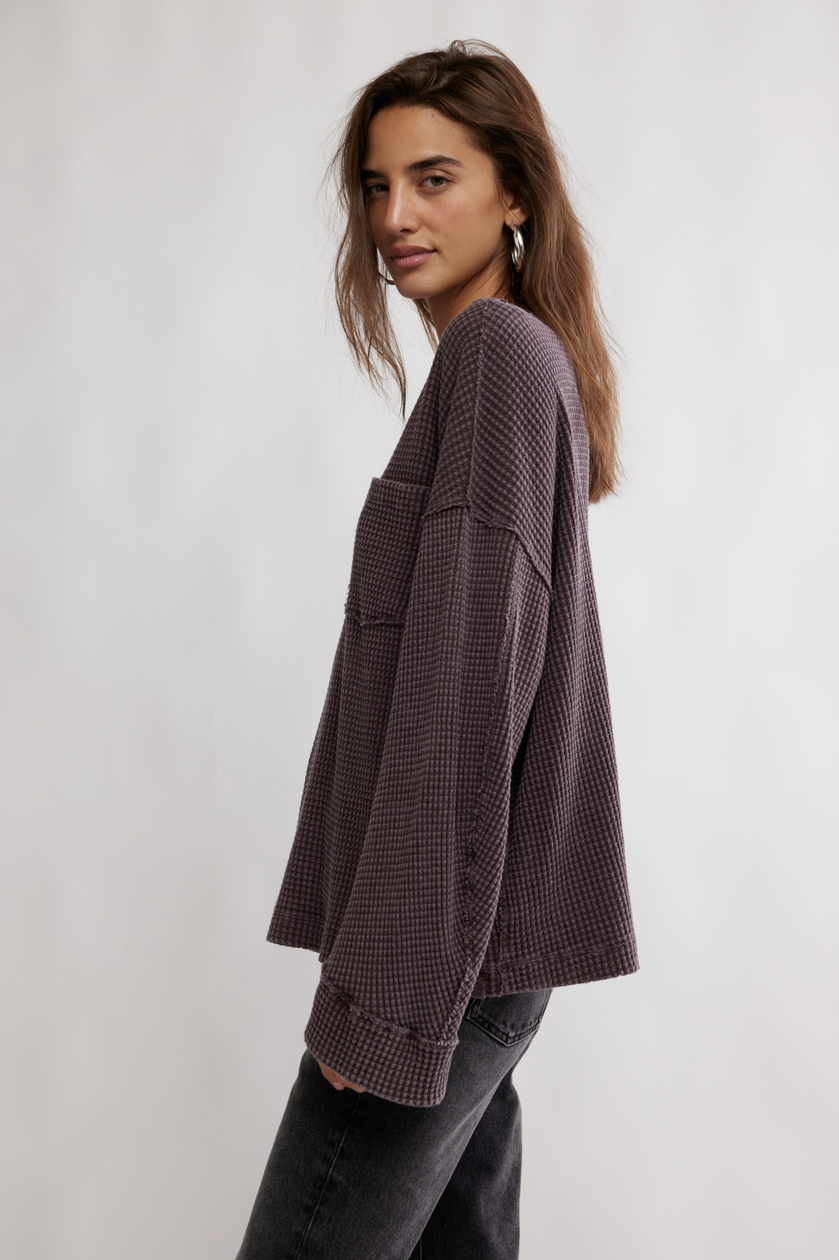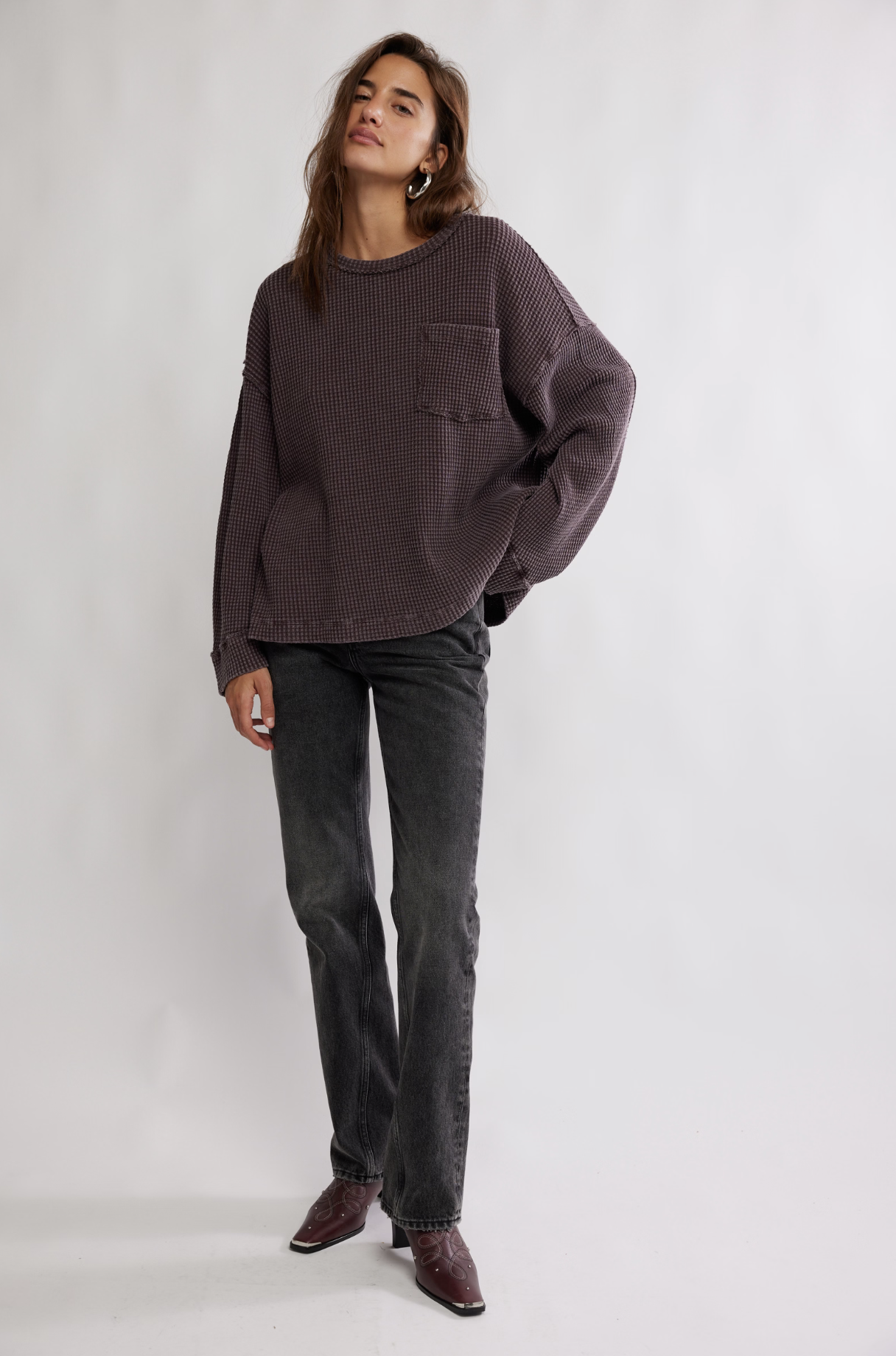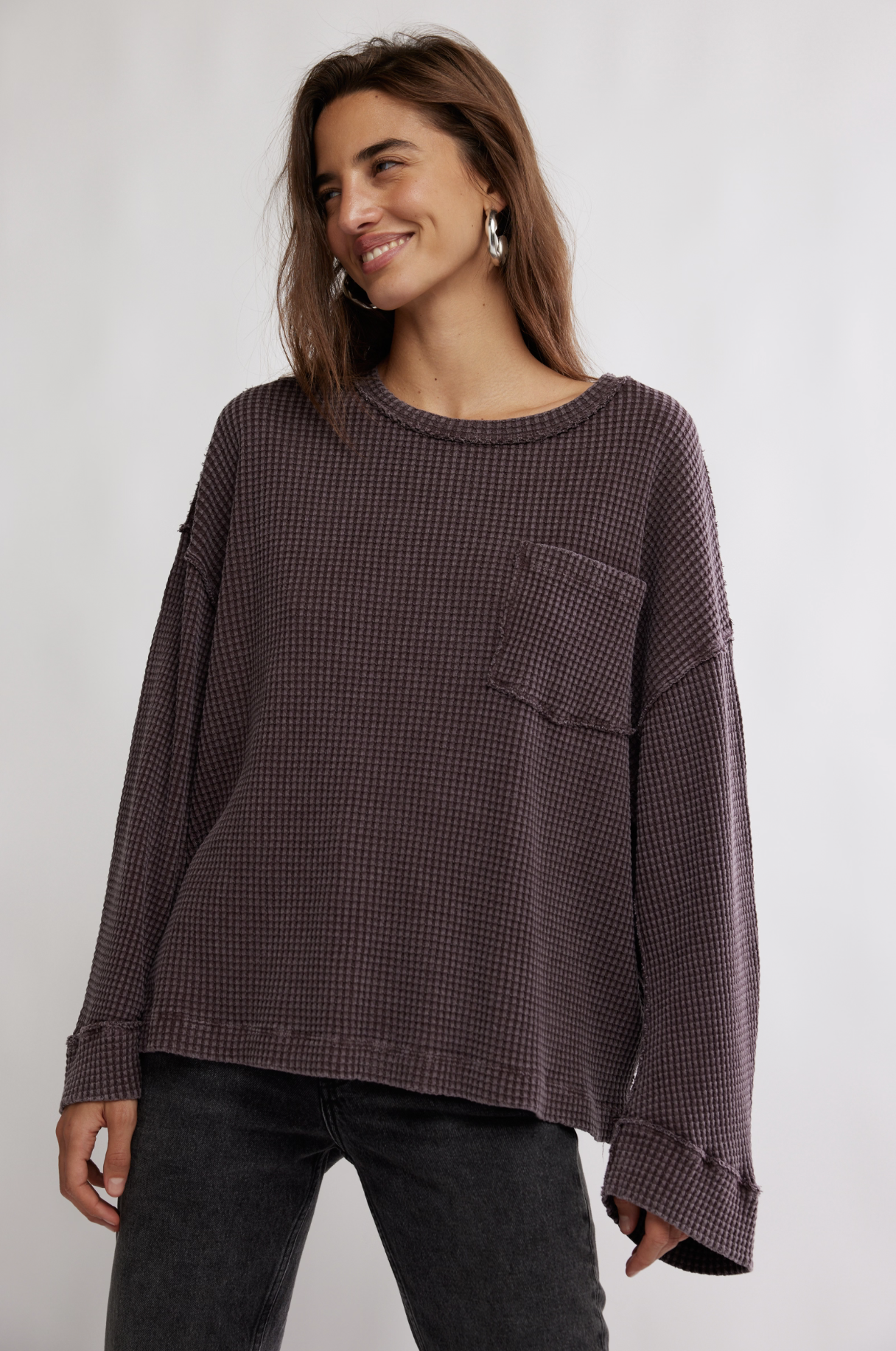 Create an accountSo essential from our We The Free collection, this waffle knit top features soft cotton fabrication, a slouchy, relaxed silhouette, and exaggerated drop shoulders for a go-to comfy staple.