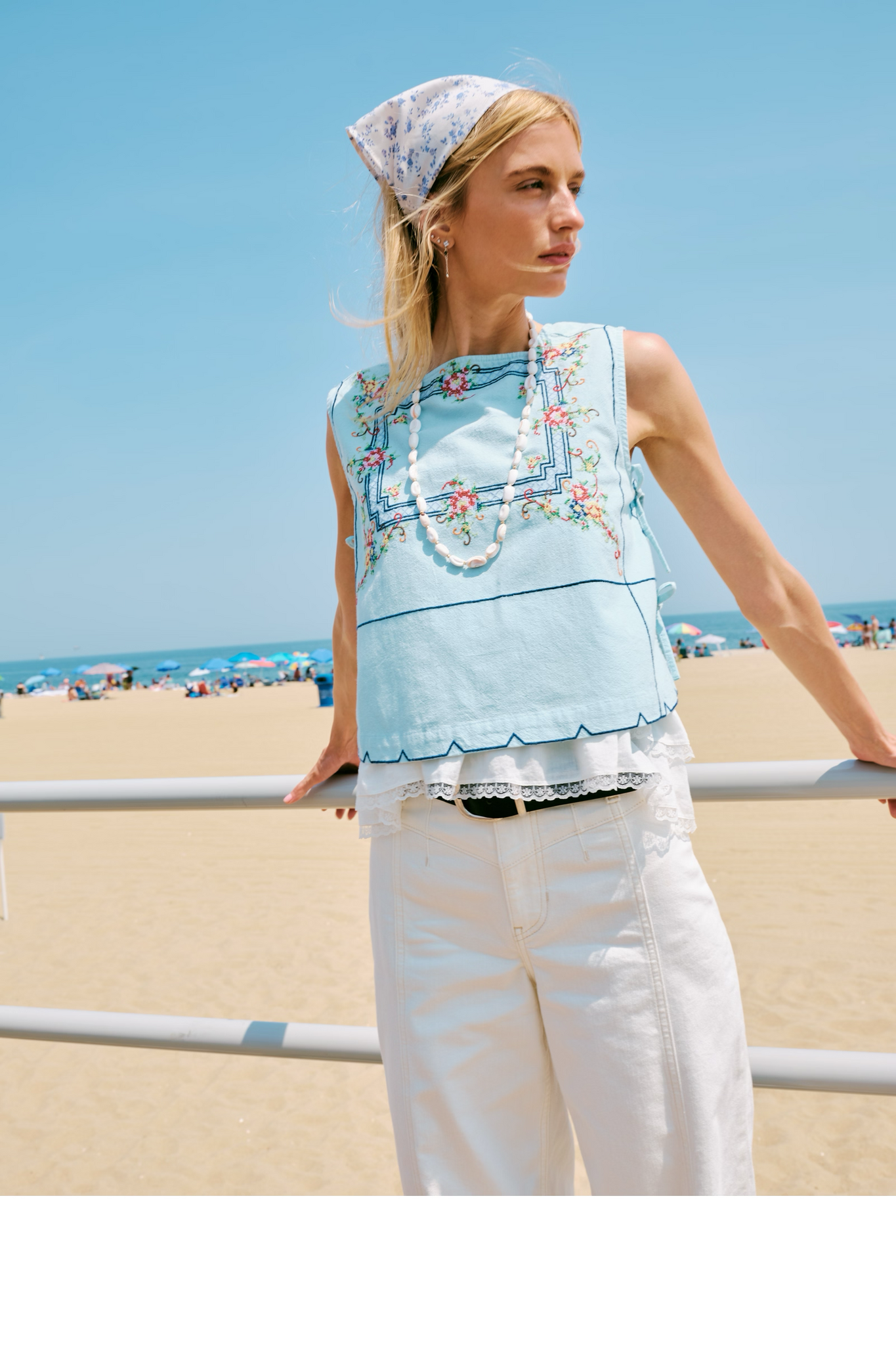 Create an accountMeet us in the secret garden wearing this stunning top, featured in a sleeveless, boxy style with charming cross-stitch embroidery and tie sides for the perfect dainty touch.