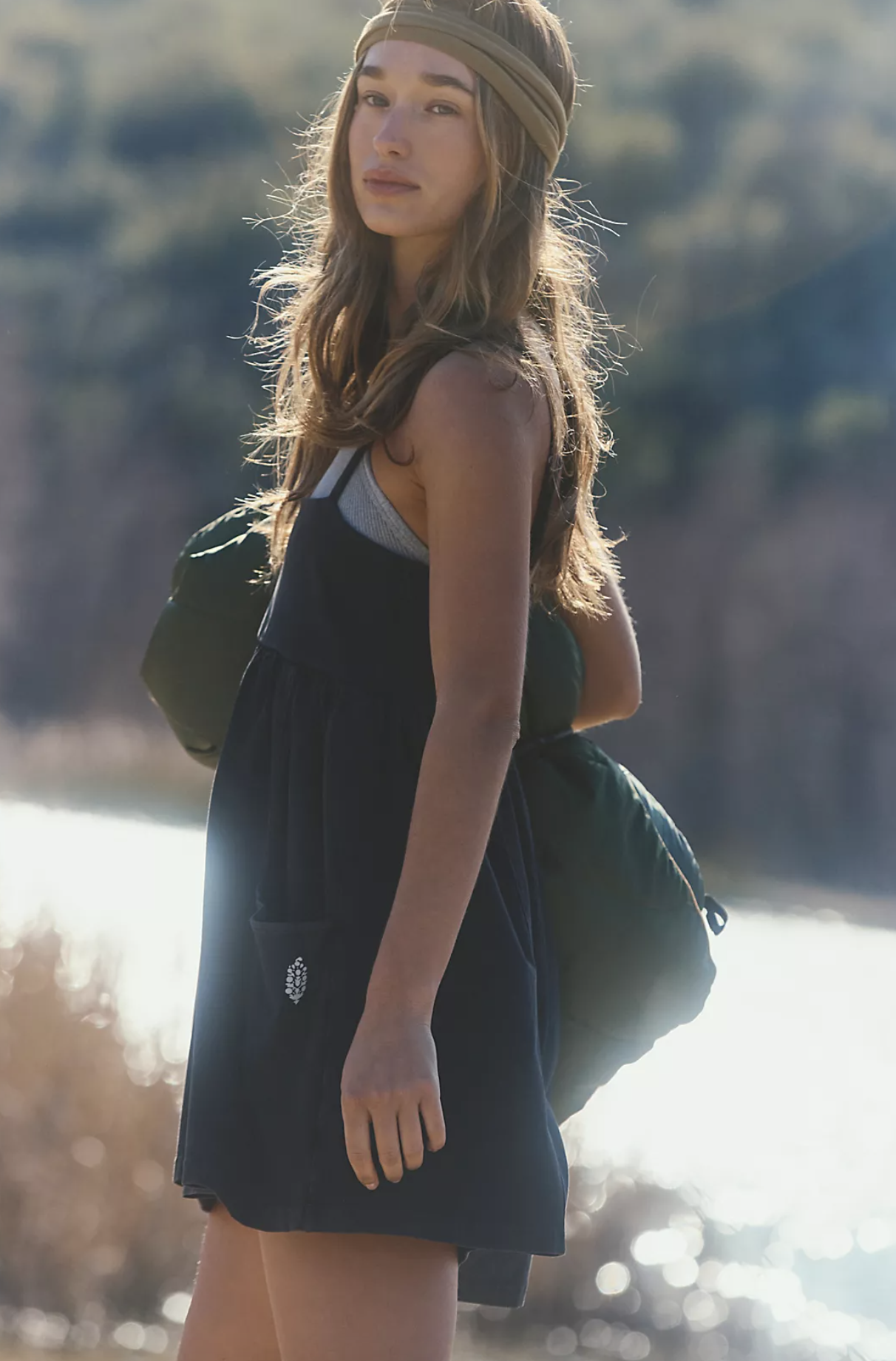 Features: Soft, breathable cotton fabrication with a little stretch; pull-on silhouette; square neckline + back; skinny shoulder straps; relaxed, slightly boxy shorts; patch pockets at both legs; zipped stash pocket with buti logo at back.