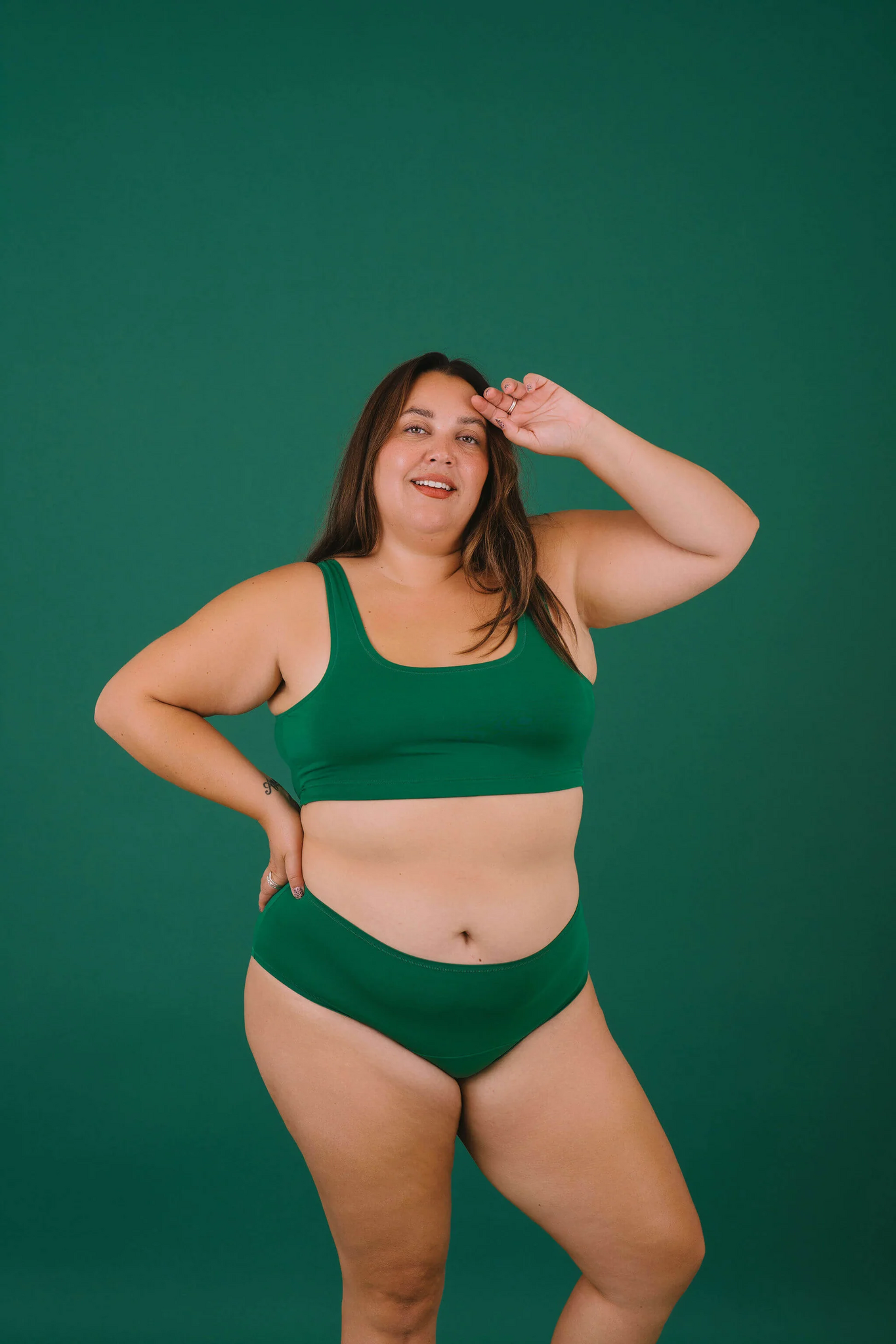 This design is free of front seams, with a flattering back cut. The gusset is full coverage and free of uncomfortably placed seams, extending from above the pubic region back to mid-bum.