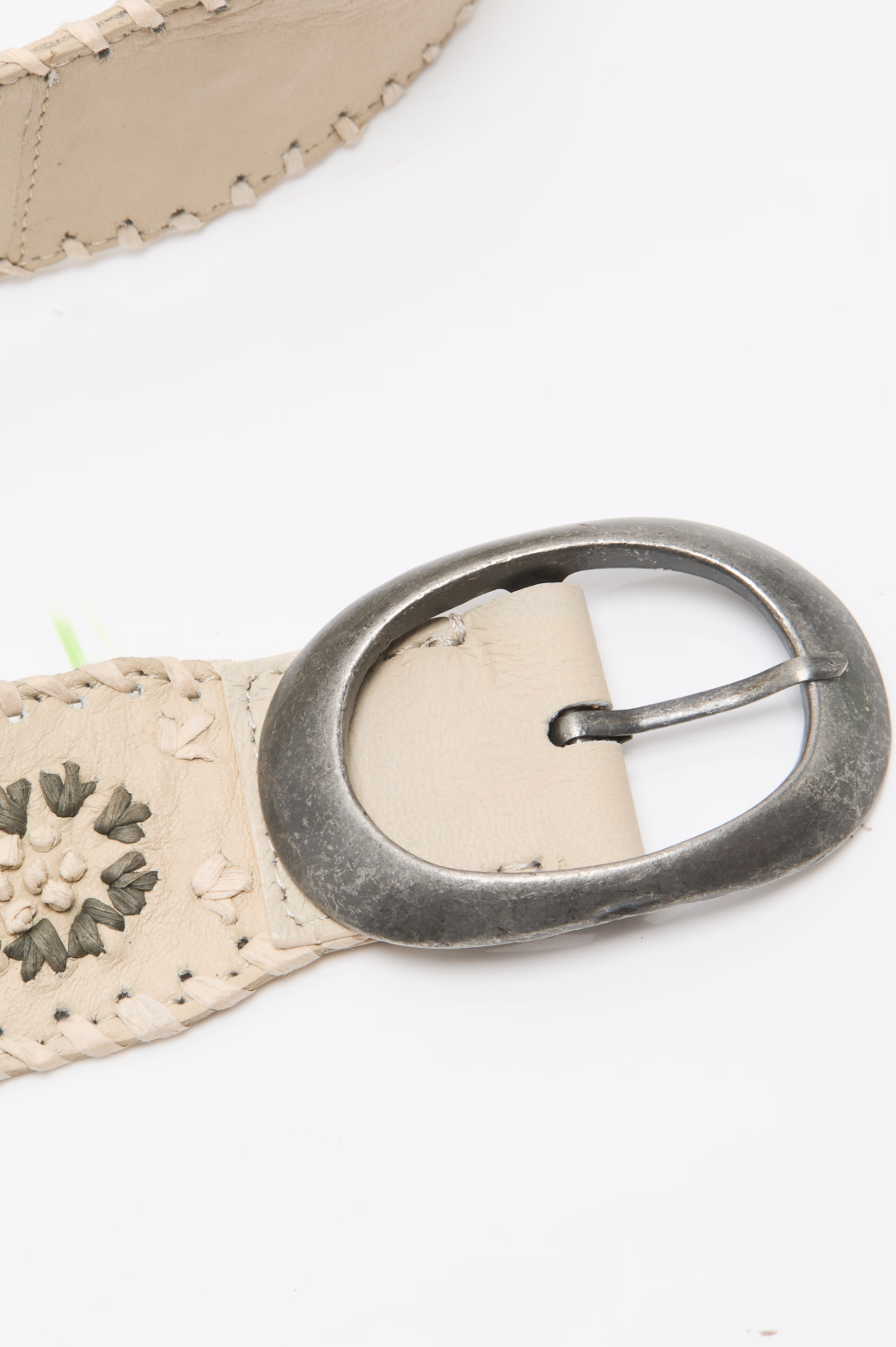 Create an accountThis leather belt, adorned with woven raffia trim and florals, adds a playful finishing touch to any 'fit.