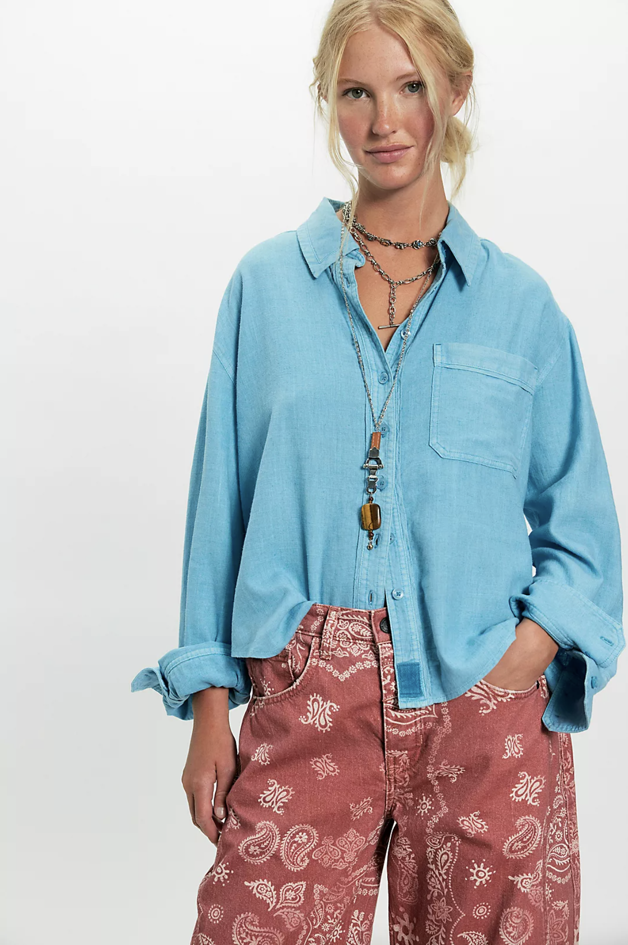 Create an accountBreezy, billowy, beautiful, this airy top from Free Peoples We The Free collection features a lightweight linen-blend fabrication and a relaxed-fit button-down silhouette, making it the perfect effortless essential.