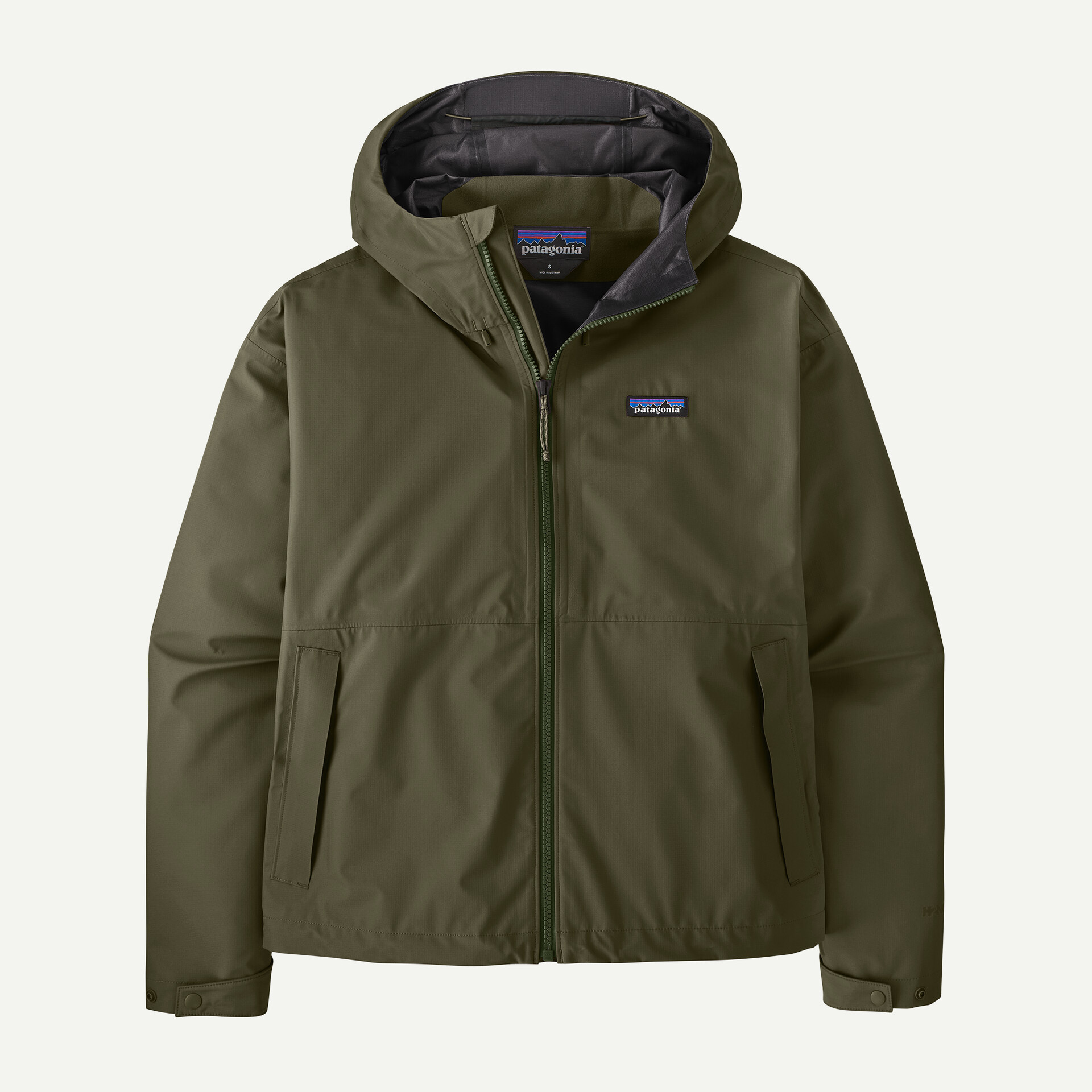 Waterproof Vislon® center-front zipper and Patagonia® P-6 logo on the front-left chest