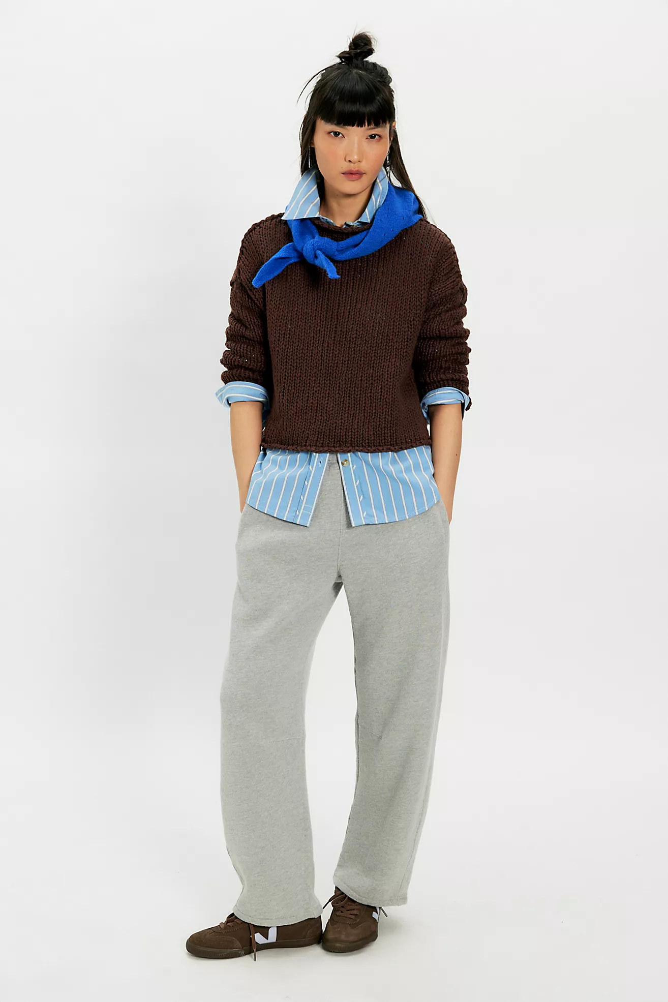 Create an accountSo light and perfect for any-season layering, this staple sweater is featured in an airy cotton knit with a rolled neckline and dropped shoulders for that laidback look.