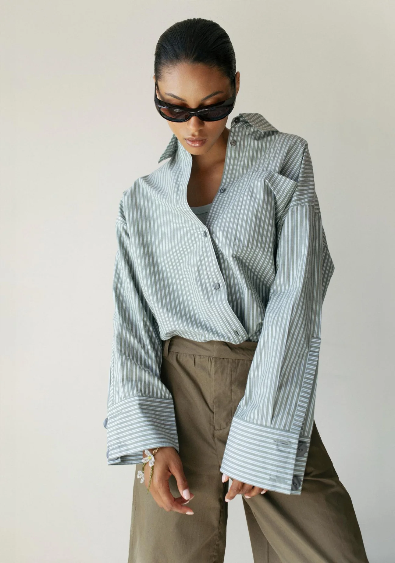 Create an accountThe Sofie Shirt brings a relaxed, oversized feel to the classic striped button-up. Cut from breathable woven cotton, it’s perfect for lounging or out-of-office days with our Wilma Cord pant. Or be traditional and pair with the Georgia Short or Nyah Pant for a coordinated set.