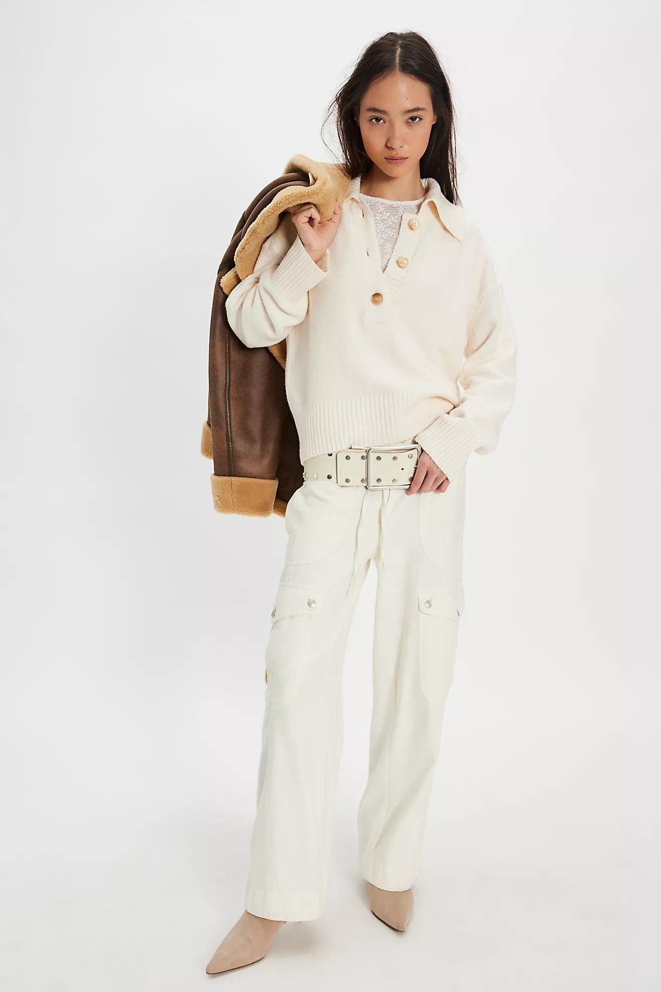 Create an accountThe definition of cozy, this sweater features a classic polo-inspired silhouette, a cotton-blend knit fabrication, and charming tortoise shell buttons.