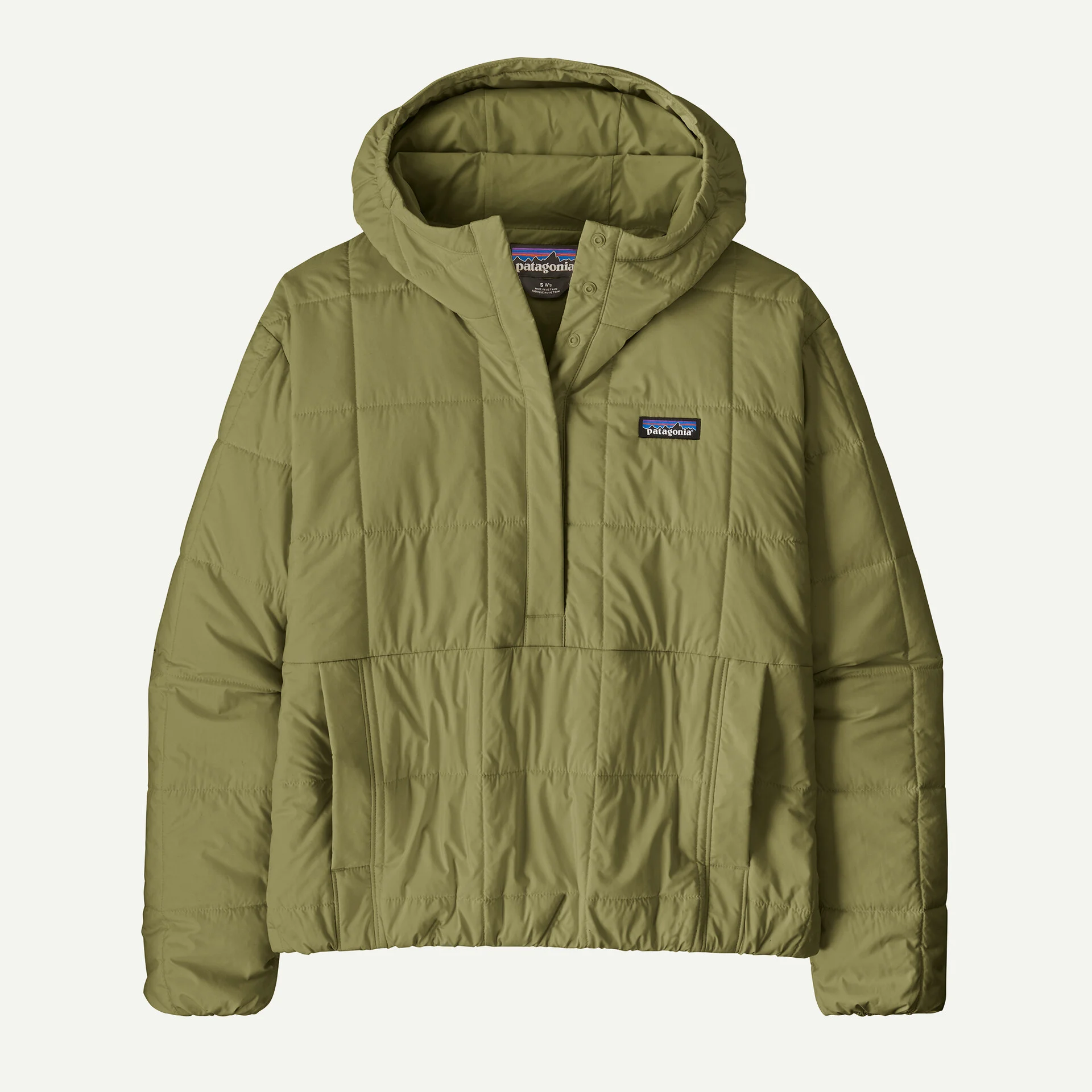 Pullover hooded anorak with a hidden snap-placket front