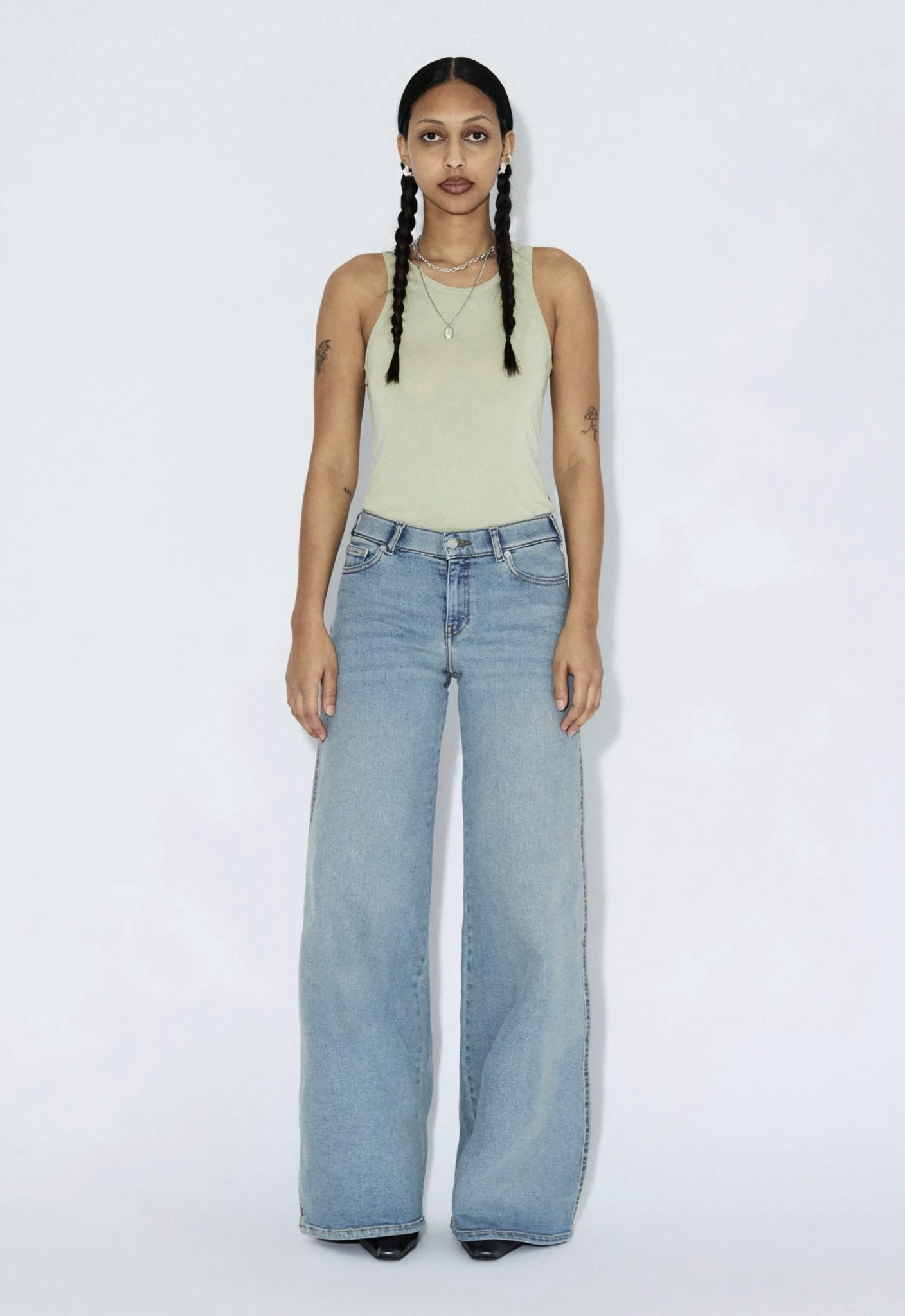 - Wide, slightly flared leg